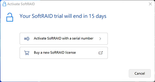 1. 執行 SoftRAID 如果您有啟動序號,可以在開啟軟體後輸入序號;如果沒有可以免費試用 14 天。